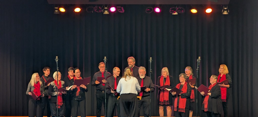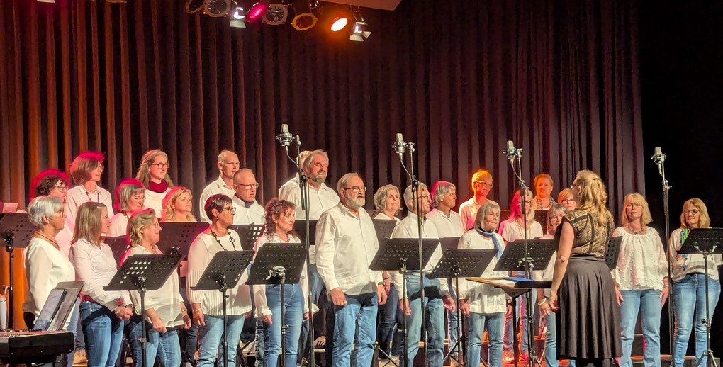 Einen weiteren Höhepunkt bescherten nach der Pause die zahlreichen Sängerinnen und Sänger vom Liederkranz Schwenningen, dirigiert und am Klavier begleitet von Daniel Sütö. Sie servierten ebenfalls bekannte deutsche und englische Popsongs und begeisterten mit wunderbarem Klang und Präzision. Vor allem ihren afrikanischen Gospelsong „Yakanaka“, bei dem Chorleiter Daniel Sütö mit seinem Solo brillierte, feierten die Zuschauer!